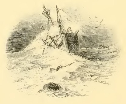 “As I was once sailing,” said he, “in a fine, stout ship, across the banks of Newfoundland, one of those heavy fogs that prevail in those parts rendered it impossible for us to see far ahead, even in the daytime; but at night the weather was so thick that we could not distinguish any object at twice the length of the ship. I kept lights at the masthead, and a constant watch forward to look out for fishing smacks, which are accustomed to anchor of the banks. The wind was blowing a smacking breeze, and we were going at a great rate through the water. Suddenly the watch gave the alarm of ‘a sail ahead!’ — it was scarcely uttered before we were upon her. She was a small schooner, at anchor, with her broadside toward us. The crew were all asleep, and had neglected to hoist a light. We struck her just amidships. The force, the size, and weight of our vessel, bore her down below the waves; we passed over her and were hurried on our course. As the crashing wreck was sinking beneath us, I had a glimpse of two or three half-naked wretches, rushing from her cabin; they just started from their beds to be swallowed shrieking by the waves. I heard their drowning cry mingling with the wind. The blast that bore it to our ears, swept us out of all further hearing. I shall never forget that cry! It was some time before we could put the ship about, she was under such headway. We returned, as nearly as we could guess, to the place where the smack had anchored. We cruised about for several hours in the dense fog. We fired signal-guns, and listened if we might hear the halloo of any survivors: but all was silent — we never saw or heard any thing of them more.”