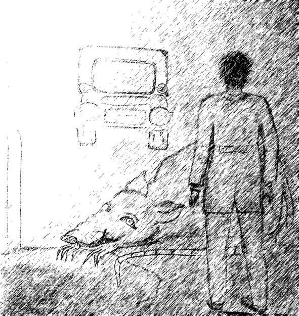Возле туши стояли трое. Свет фар автомобиля освещал их, оставляя утопать в темноте мир вокруг. Девушка с собранными в хвост волосами оживленно спорила с высоким худощавым парнем в футболке и джинсах. Рядом с ними молчаливо стоял пожилой мужчина в очках. Мужчина задумчиво смотрел в сторону, где лежало животное. Мальчик радостно окрикнул мужчину, тот встрепенулся и поднял на них взгляд. Парень с девушкой перестали спорить и уставились на Кирина.