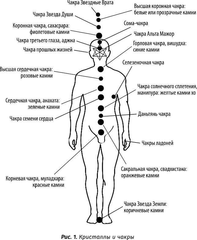 Чакры, расположенные ниже пояса, традиционно считаются физическими, в верхней части туловища — настроены на эмоциональные проблемы, ведущие к психосоматическим заболеваниям, а те, что находятся на голове, соответствуют ментальному и интуитивному уровню (см. рис. 1). Чакра третьего глаза (находится между бровями и чуть выше), сома-чакра (над чакрой третьего глаза) и коронная функционируют на духовном уровне, как и высшие коронные чакры. Любой дисбаланс, блокировка или нарушение в них создают дискомфорт, и он, рано или поздно, обязательно проявится в вашем физическом теле. Однако состояние равновесия можно (и нужно) восстановить прежде, чем на физическом уровне возникнет болезнь.