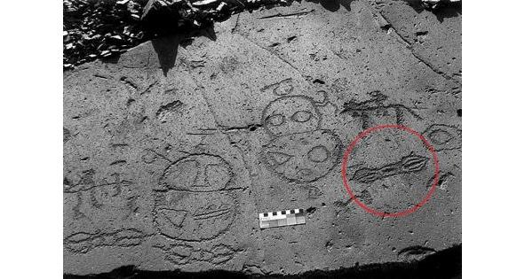 Рис. 11. Наскальные рисунки, ваджра в красном кружочке [93]