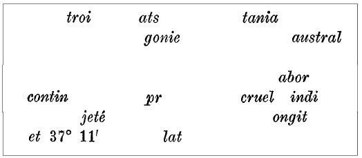 Второй клочок бумаги более пострадал, чем предыдущий. В нем заключались немногие бессвязные слова, расположенные следующим образом: