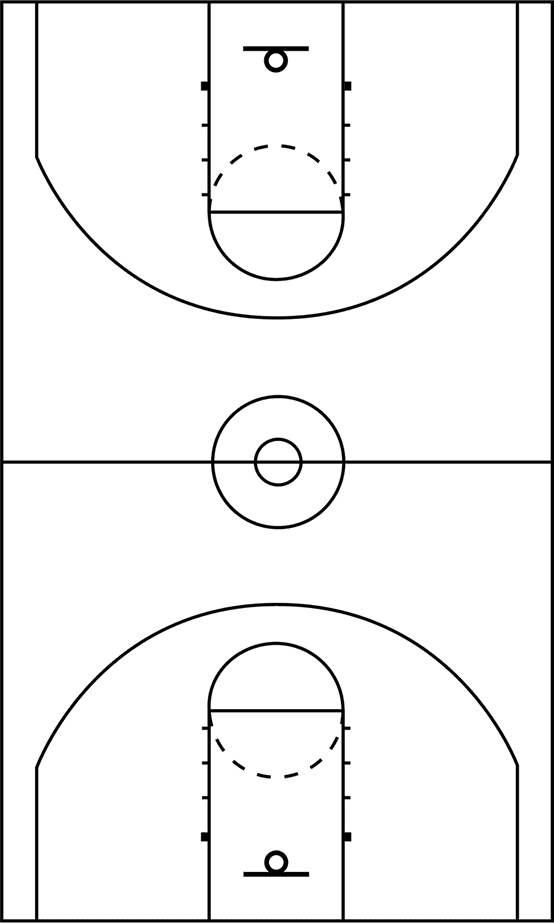 • Начните движение с согнутыми коленями, держа низко мяч. Затем распрямитесь и совершите бросок в прыжке или из-под корзины либо сделайте передачу.