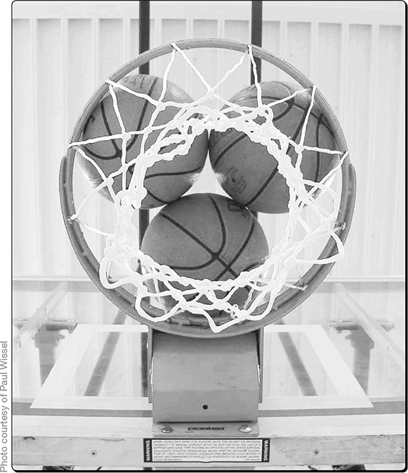 Ошибка: Мячи во время броска ударяют по кольцу и крутятся или скользят с передней на заднюю часть кольца и вылетают, а не ударяют о кольцо и не проходят через обруч