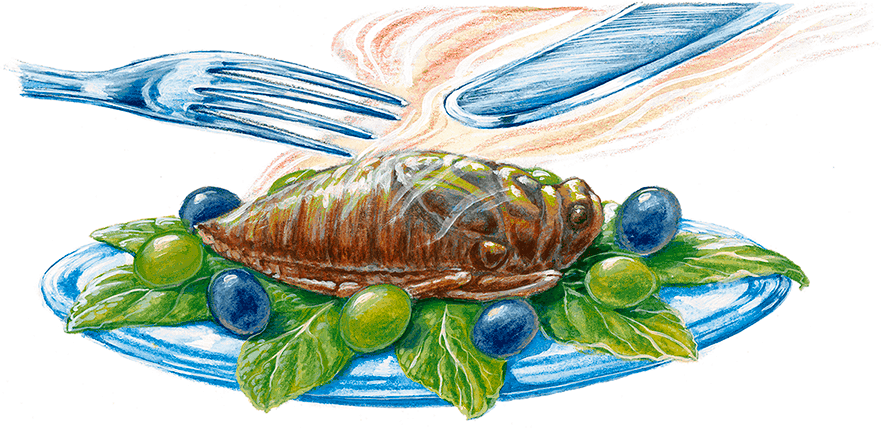 – Ну вот уж и гадость! – засмеялся Иван Гермогенович. – Просто непривычная для тебя пища – и только… Едим же мы омаров, креветок, крабов и даже раков, которые питаются падалью… Едим, да ещё похваливаем… А вот арабы смотрят на тех, кто ест крабов и раков, с отвращением… Кроме саранчи, люди едят и других насекомых. В Мексике, например, туземцы собирают яйца полосатого плавунчика клопа, называют они их «готль» и считают самым лакомым блюдом… Неплоха, по мнению знатоков, и цикада. Та самая цикада, которую воспел в своей оде поэт Древней Греции Анакреон.