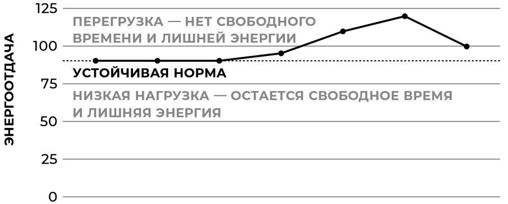 Вы должны сами определить, что для вас является нормой (иными словами, решить, при какой температуре вы точно не сваритесь), и стараться ее придерживаться. Норма — это то, как вы ведете себя, когда у вас все в порядке. Это ваше состояние гомеостаза. Как вы проводите свое время, когда на работе у вас все спокойно? В своем нормальном состоянии вы должны быть достаточно уравновешенны, чтобы проработать 100 дней без отпусков и отгулов и не выгореть.