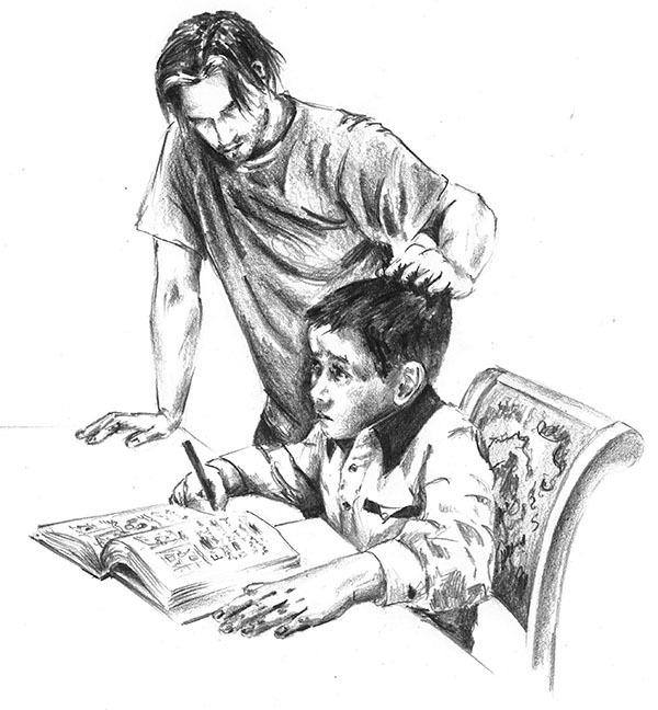 Прошло еще секунд двадцать, прежде чем неслышно сзади подошел отец и, положив руку на голову сыну, принялся аккуратно и ласково гладить ее, словно любящий родитель. Нежным голосом он спросил у маленького Вити, готово ли решение задачи, и, словно зная ответ заранее, остановил руку на затылке. Мальчик промямлил, что времени слишком мало, а задача очень сложная. После этого глаза отца налились кровью, и он крепко сжал волосы сына. Витя знал, что будет дальше, и начал кричать: «Папа, папочка, не надо! Я все решу, пожалуйста, не надо». Но эти мольбы вызвали лишь ненависть, и отец, довольный собой, что было силы ударил сына головой об учебник. А затем еще раз и еще, пока не пошла кровь. «Такой выродок, как ты, не может быть моим сыном», – бросил он и отпустил голову ребенка. Мальчик сквозь слезы, которые пытался скрыть от отца, стал ловить ладонями кровавые капли из носа, падающие на учебник. Кровь была признаком того, что на сегодня игра окончена и Витя урок усвоил.