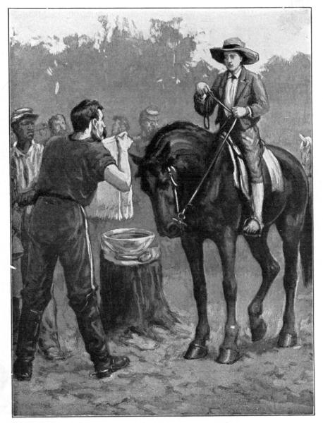 "I wish to see Colonel Marshall," said Frank, pushing his way through the group that surrounded him, and riding up to the man who was still occupied at the basin on the stump.
