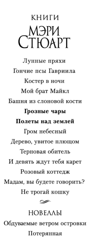 Грозные чары ; Полеты над землей : романы / Мэри Стюарт ; пер. с англ. М. Виноградовой, В. Яхонтовой. — СПб. : Азбука, Азбука-Аттикус, 2019. (The Big Book).