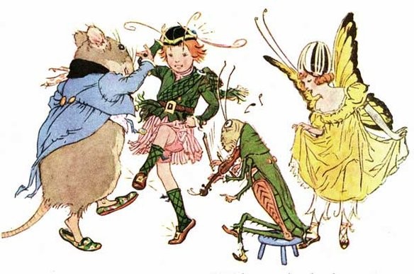 f Course you know the story of "The Grasshopper and the Ant"—how one autumn, when the winds were growing raw and cold and the nights frosty, the poor Grasshopper, who hadn't done anything but fiddle and dance all through the pleasant summer and had nothing laid by for the hard winter, went to the thrifty Ant and asked for a bite to eat and a chance to warm his toes in the chimney corner. And how the tight-fisted Ant refused and said to the shivering Grasshopper, "Keep on fiddling and dancing, it may help to keep you warm!"