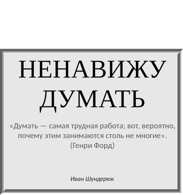 Если посмотреть на книгу издалека, то кажется что все банально просто, думать — главная задача любого человека, чтобы все в жизни получалось, но кто сегодня любит думать?