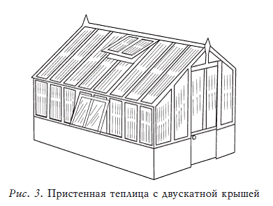 Такую теплицу лучше всего возвести возле южной или западной стены дома (рис. 2), от которых она нагревается. Очень часто такая теплица имеет дверь, которая ведет в дом.