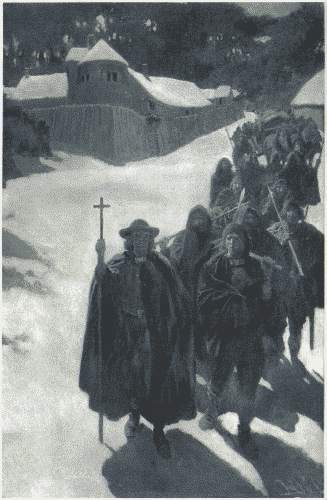 "Father," said Gregor to the leader, "surely this day's march is done. It is time to rest, and eat, and sleep. If we press onward now, we cannot see our steps; and will not that be against the word of the psalmist David, who bids us not to put confidence in the legs of a man?"