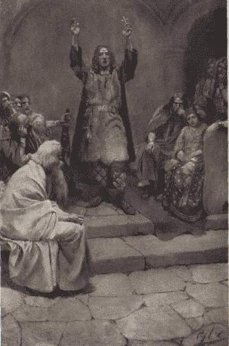 What tales he had told that day! Not of miracles wrought by sacred relics; nor of courts and councils and splendid cathedrals; though he knew much of these things, and had been at Rome and received the Pope's blessing. But to-day he had spoken of long journeyings by sea and land; of perils by fire and flood; of wolves and bears and fierce snowstorms and black nights in the lonely forest; of dark altars of heaven gods, and weird, bloody sacrifices, and narrow escapes from wandering savages.