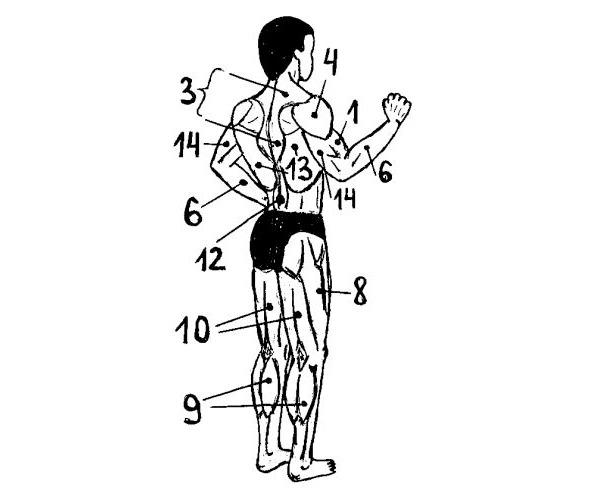 Как известно, мышцы бывают двух видов: гладкие (выстилают стенки внутренних органов, кровеносных сосудов, кожи) и скелетные. Гимнастика тренирует скелетные мышцы. Начинать тренировку следует с упражнений, воздействующих на крупные группы мышц, а затем уже подтягивать более мелкие. Чтобы эффективно тренироваться, нужно иметь хотя бы общие понятия о мышечной системе человека, знать, какие функции выполняют те или иные мышцы и как их развивать (рис 1).