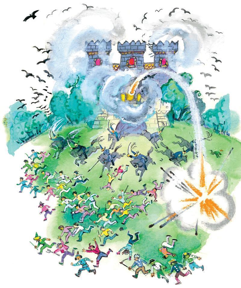– Ах, да неужели вы не знаете, что сегодня оружейник Просперо и гимнаст Тибул повели народ, чтобы взять штурмом Дворец Трёх Толстяков?
