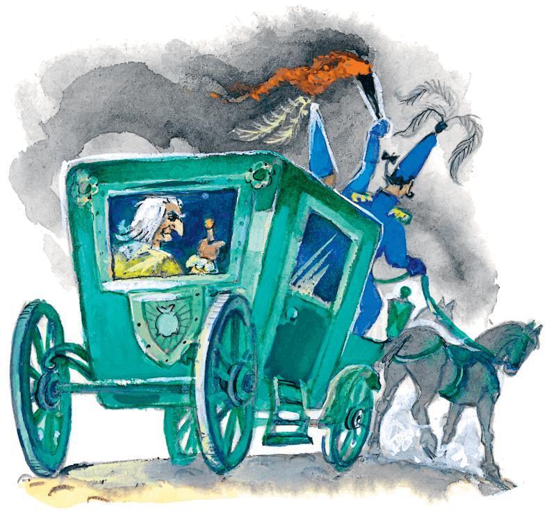 В чёрной карете с гербом сидел чиновник Совета Трёх Толстяков. Цветочницы перепугались. Подняв ладони к щекам, они смотрели на его голову. Она была видна через стеклянную дверцу. Улица была ярко освещена. Чёрная голова в парике покачивалась, как мёртвая. Казалось, что в карете сидит птица.