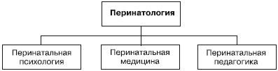 Как у нас, так и за рубежом в процессе решения теоретических и практических задач перинатологии, зародившейся и представляющей собой область медицины, в настоящее время естественным путем оформились три больших раздела: собственно перинатальная медицина, перинатальная психология, перинатальная педагогика (рис. 1).