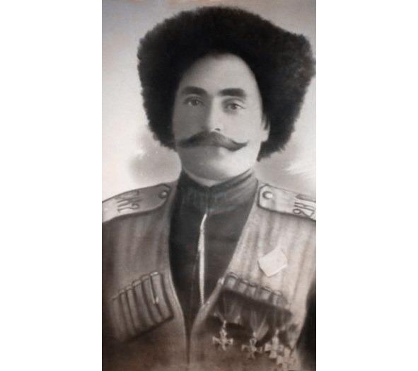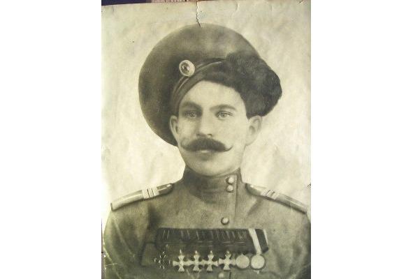 Данных о награждении Георгиевским крестом 1 ст. не обнаружено. Награжден Георгиевским крестом 2-й степени №21580: Вместо креста 3 ст. №29777. «За то, что 30.01.1915, находясь в разъезде у д. Суль, занятой противником и, вызвавшись охотником определить численность неприятеля, проскакал вдоль деревни, чем и вызвал огонь 0.5 роты немцев, занимавших деревню». Приказ по 5-й армии №139 за 1915 г. Награждён Георгиевским крестом 3-й степени №29777: «За то, что в ночь с 29-го на 30.03.1915, вызвавшись охотником произвести разведку неприятельского расположения у д. Ольшины, вместе с казаками, запасшись ножницами для резки проволоки, во 2-м часу ночи, пользуясь темнотой и дурной погодой, отправился из сотни, прошел болото по колено в воде и зашел во фланг немецкого расположения. Первый ряд проволоки вблизи противника, с явной опасностью для жизни, был уничтожен на протяжении нескольких саженей. Незаметно минуя ров с водой и второй ряд проволочных заграждений, пробрался ко второму ряду окопов, по обнаружении его немцами вынужден был отойти назад, произведя своей стрельбой переполох среди расположения немцев; таким образом удалось приблизительно узнать численность немцев в окопе. Награждён Георгиевским крестом 3-й степени №106966: «За отличие в бою 12.08.1915 под. мест. Шенберг». Награждён ГК 3 ст. №133894: «За то, что 30.01.1915, будучи начальником головного дозора от офицерского разъезда, подошел к д. Суль, занятой противником и, желая определить численность и вызвавшись охотником, проскакал вдоль деревни и тем самым вызвал огонь полуроты немцев, после чего присоединился к разъезду». Имеет Георгиевский крест 4-й степени №199579: «30.01.1915 г. будучи начальником головного дозора от офицерского разъезда подошел к д. Суль, занятой противником, и желая определить численность, вызвавшись охотником проскакал вдоль деревни и тем самым вызвал огонь полуроты немцев, после чего присоединился к разъезду».