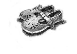 И вот я менял пластинки, а взрослые танцевали. Бальные наряды офицерской компании были прихотливы. На женщинах сверкали крупными цветами платья из крепдешина и креп-жоржета, с юбками модного фасона полудлинное солнце-клеш (много лет спустя я узнал, что это был диоровский New look), собственноручно сшитые – по картинке из московского «Журнала мод» с выкройками – на ручных наследственных швейных машинках Zinger или недавно появившихся подольских. На дамских ногах были босоножки из лакированных ремешков на танкетках из пробки. За такими босоножками ездили из сочинского военного санатория к сухумскому подпольному сапожнику… Кавалеры, измученные жарой и шерстяными кителями со стоячим воротником, выступали в синих брюках-галифе с высоким корсажем из выстроченного сатина и в казенных нижних рубахах фасона «гейша» с подвернутыми рукавами. При этом танцевали они босиком, поскольку пыльные сапоги оставили в сенях, а под сапогами носили портянки, в которых не потанцуешь – вот и снова портянки, в третий раз опишу подробно… По ходу танцев обязательно кто-нибудь наступал на волочившиеся по полу тесемки, которыми снизу были оснащены галифе.