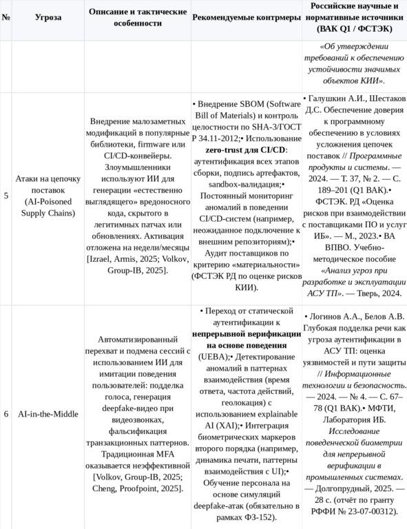 Однако ИИ активно используется и в защитных целях. Отмечается рост внедрения внутренних AI-ассистентов в SOC-команды для передачи экспертизы менее опытным сотрудникам, а также применения ИИ для выявления аномалий в поведенческих паттернах, незаметных для традиционных средств [33]. Важно, что победа в ИИ-гонке определяется не наличием модели, а уровнем грамотности в её применении — отсюда вытекает необходимость введения обязательной ИИ-грамотности в корпоративные стандарты обучения персонала по ИБ [33].