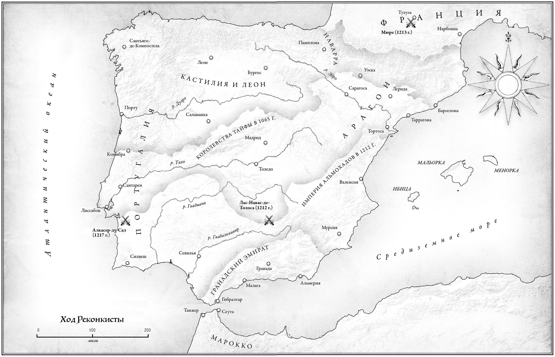 Примерно в 400 километрах к северо-востоку от Севильи высились башни и каменные стены Толедо, некогда могущественной столицы империи вестготов. Под властью мусульман город, застроенный изящными мостами, общественными банями, рынками и мечетями, процветал. Он стоял на берегах широкой и быстрой реки Тахо — самой длинной водной артерии в Иберии: сбегая с Иберийских гор, через 1000 километров, у Лиссабона, она впадает в Атлантику. Долина реки и весь ее бассейн в те времена считались пограничьем, за которым лежали земли, принадлежавшие христианским королям северной Испании. Здесь же, на юге, страна была разделена между соперничающими правителями, которые, хотя и исповедовали одну религию, постоянно враждовали и сражались друг с другом. Самыми значительными среди государств севера Испании считались Галисия, Леон, Кастилия, Арагон, Наварра и Барселона. Но, как и на юге, было на севере одно государство и один правитель, превосходивший всех прочих по силе и могуществу.