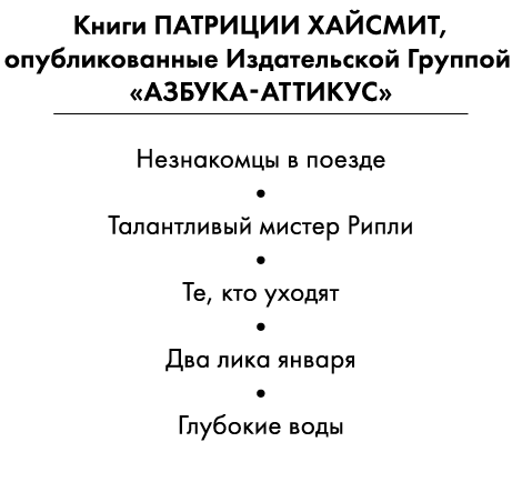 Да, ее романы публиковались как триллеры — но они гораздо больше, чем триллеры: по психологической глубине, стилистической фактуре, сюжетной увлекательности Хайсмит нет равных.