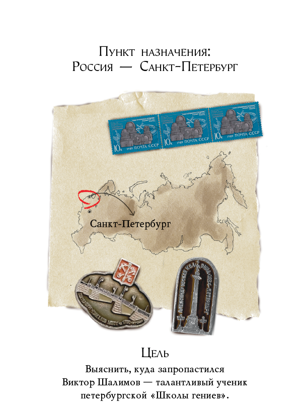В престижную школу для детективов «Око Интернешнл» поступает анонимный сигнал о помощи: пропал без вести Виктор Шалимов, ученик «Школы гениев», элитной школы-пансиона в Санкт-Петербурге. Очередное запутанное дело поручено Ларри Мистери! Вместе со своей двоюродной сестрой Агатой, котом Ватсоном и мистером Кентом незадачливый детектив летит в Россию. Он собирается выяснить, что произошло с юным изобретателем. Связано ли исчезновение Виктора с его матерью Сарой Шалимовой и её номинацией на Нобелевскую премию по химии? И какие ещё тайны скрываются за фасадом школы для гениев?