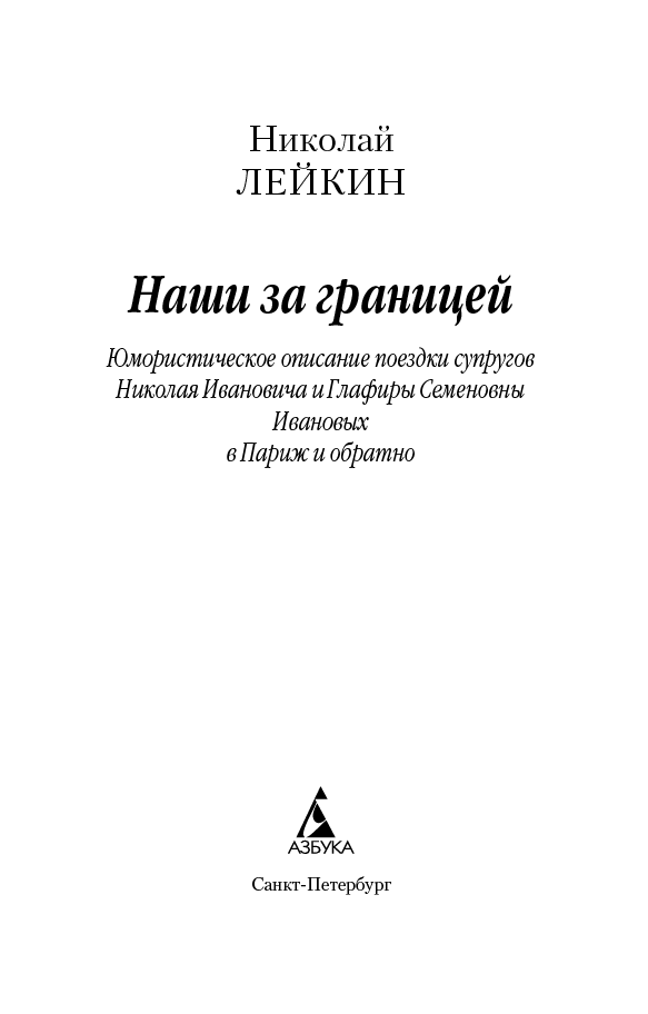 Наши за границей : Юмористическое описание поездки супругов Николая Ивановича и Глафиры Семеновны Ивановых в Париж и обратно / Николай Лейкин. — СПб. : Азбука, Азбука-Аттикус, 2023. — (Азбука-классика).