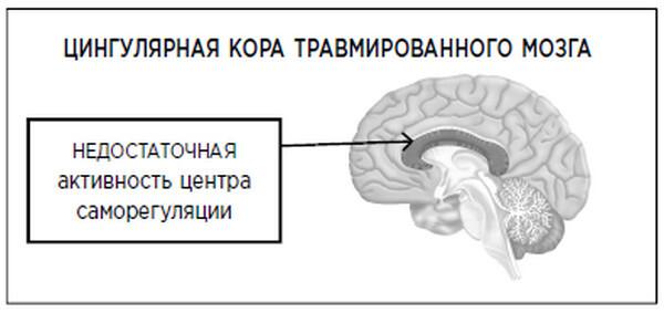 Цингулярная кора травмированного мозга часто недостаточно активна. Это может привести к трудностям с регулированием эмоций, мышлением и принятием решений. Повышение активности этой области может быть чрезвычайно важным, поскольку улучшает способности человека контролировать бесполезные или болезненные эмоции и управлять тревожными мыслями. При высокой активности центра саморегуляции у человека также может появиться возможность подавлять активность центра страха в головном мозге, что приводит к меньшей эмоциональной реактивности на триггеры травмы.