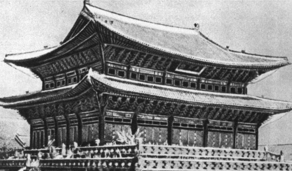 Тронный зал дворца Кёнбоккун в Сеуле, 14 в. Реставрирован в 1863 г.