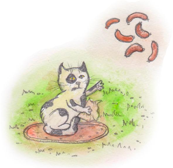 — Вы — не первые, кто нам её приносит. Вот ведь, изобретательница! У одних соседей колбасы выпросит, у других — сосиску, у третьих — даже собачьим кормом не побрезгует! И куда только всё девается– всё равно ведь остаётся худой и взъерошенной?! Небось, если бы щеки выросли, то уже не жалели бы её все так! Не обижайтесь на неё, пожалуйста! — потрепала соседка кошку по загривку.