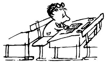 Когда сегодня утром Клотер пришёл в школу, мы все ужасно удивились, потому что у него на носу были очки. Клотер – хороший парень, но он в нашем классе самый отстающий, и, кажется, очки на него надели как раз из-за этого.