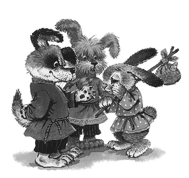 – Не плачь, зайчик, – говорят собаки. – Мы её выгоним.