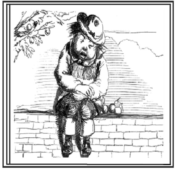 Humpty sat down upon the grass and wept grievously, for the death of his companion was a great blow to him. And while he sobbed, a voice said to him,