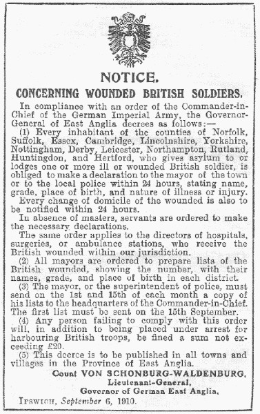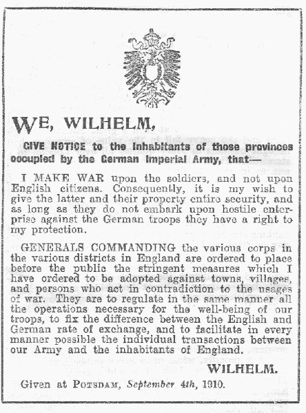WE, the GENERAL COMMANDING the German Imperial Army occupying London, give notice that: