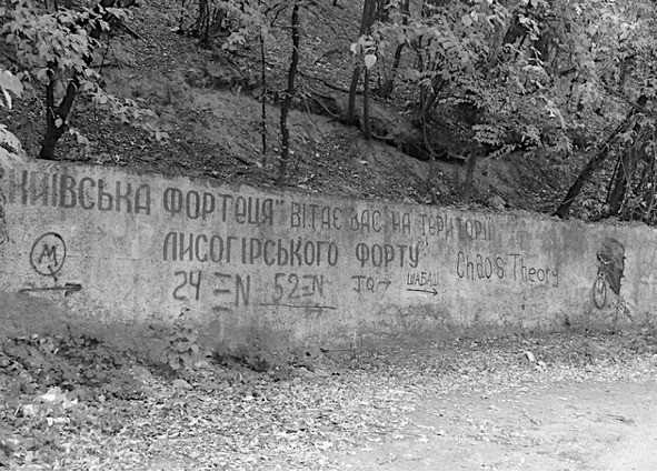 Они подошли к бетонной подпорной стенке, на котором красовалось гигантское граффити «ШАБАШ» с огромным красно-чёрным указателем.