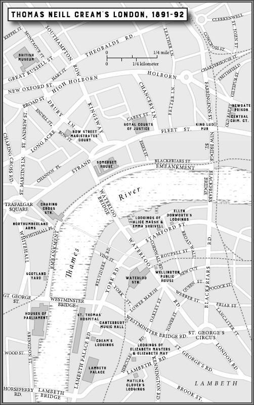 Мужчина в макинтоше, защищающем его от дневного ливня, и цилиндре, прикрывающем лысую голову, появился у дверей дома 103 на Ламбет-Пэлас-роуд. Он сказал, что его зовут Томас Нил и он ищет жилье, и хозяйка предоставила ему комнату на верхнем этаже в задней части дома. На дворе было 7 октября 1891 года. Крим вернулся в Ламбет – переполненный лабиринт грязных трущоб и дымных фабрик, располагающийся через Темзу от готического великолепия зданий парламента. Крим хорошо знал этот район Лондона: дом, где он жил, стоял напротив больницы Святого Томаса, в которой он учился медицине более 10 лет назад. Он не мог не заметить, что со времени его последнего визита рядом возвели новое здание, расположенное чуть ниже по реке от башни Биг-Бен. Облицованный полосами красного кирпича и белого камня и стоявший на фундаменте из гранита, добытого заключенными Дартмура и других тюрем, в городе появился новый штаб Столичной полиции, широко известный как Скотленд-Ярд.