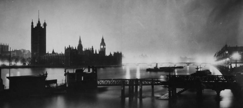Здания парламента и Вестминстерский мост, вид со стороны Ламбета на Темзе. Больница Святого Томаса находится справа (авторская коллекция)