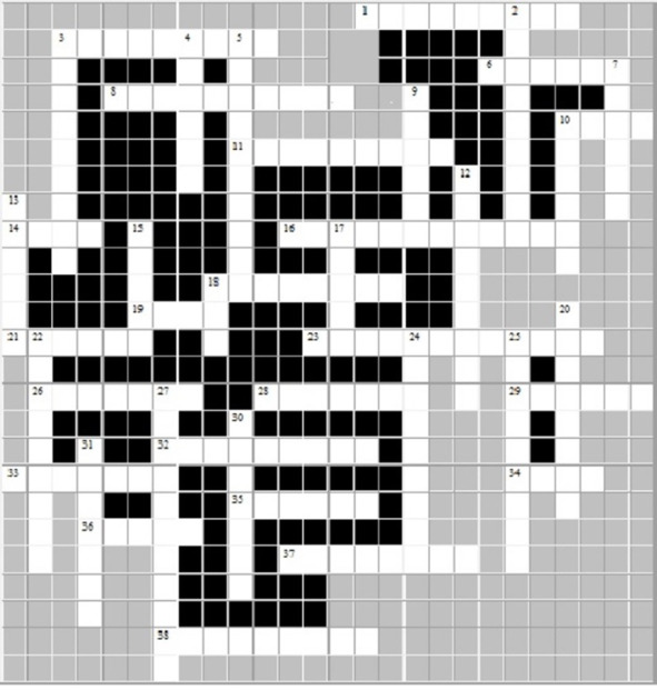 В японском варианте кроссворда черные клетки не должны соприкасаться сторонами (а значит, не должно быть блоков из черных клеток — соответственно, плотность сетки также приближается к сканвордной) и угловые клетки сетки должны быть белыми (так что сетка обязательно остается строгим прямоугольником). Очевидно, ответы вписываются на японском, то есть каной и (реже) иероглифами. Поэтому допустимы даже «двухклеточные» слова.