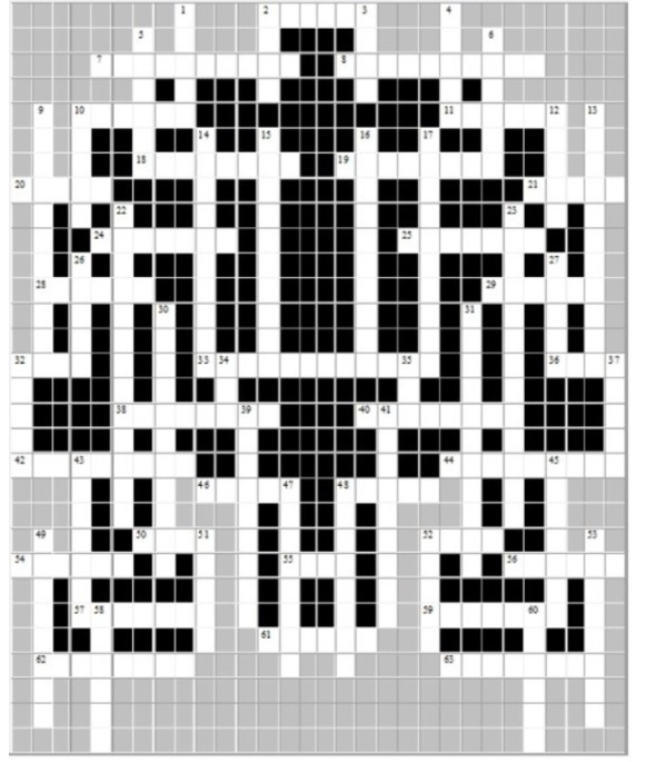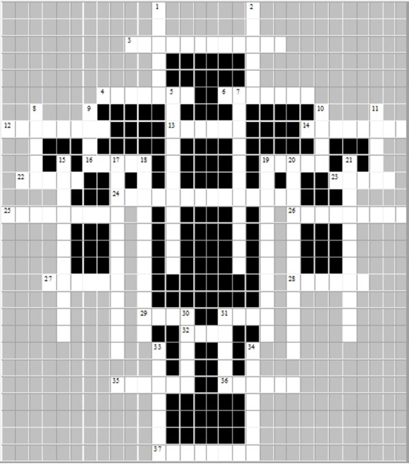 Традиционно ячейка для буквы обозначается белым цветом, а пустое пространство, со всех сторон окруженное белыми ячейками, заливается чёрным или серым цветом. Обычно рамка белой ячейки тоньше на границе двух ячеек, что визуально подчеркивает их объединение.