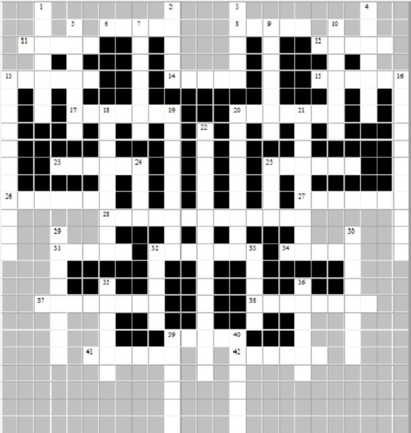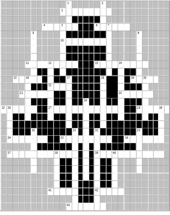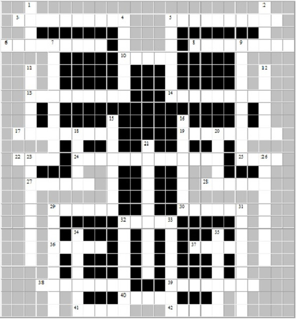 По вертикали: 1. Жрица богини Весты. 3. Вождь германского племени херусков. В 9 г. н. э. разгромил римскую армию полководца Вара в Тевтобургском лесу. 4. Римский политический деятель и диктатор, печально прославившийся так называемыми проскрипциями, т. е. многочисленными казнями без суда и следствия тысяч римских граждан. 5. Простой народ в Древнем Риме. 6. Член богатого и знатного рода в Древнем Риме. 7. Римский комедиограф. 8. Главное помещение с верхним светом в древнеримском жилом доме. 9. Римский поэт, автор шестнадцати сохранившихся гекзаметрических «Сатир», распределенных по пяти книгам. 13. Римский полководец. В начале карьеры сторонник Суллы. Участвовал в подавлении восстания Спартака. 14. Один из наиболее выдающихся представителей династии Селевкидов. 16. Страна, расположенная в северо-восточной части Африки. 17. Состояние полной зависимости, подчиненности. 19. Древние племена Италии. 20. Правитель латинского города Альба Лонга, коварно отнявший власть у своего старшего брата Нумитора, а его дочь Рею Сильвию обрекший на безбрачие, насильно отдав в жрицы богини Весты. 21. В Древнем Риме завоеванная территория, которая управлялась римским наместником. 22. Часть Библии, содержащая жизнеописания и учение Иисуса Христа. 23. Гроб или небольшая гробница из камня, дерева или других материалов, нередко украшенный росписью или скульптурой. 25. Карфагенский полководец. Сын Гамилькара Барки. В ходе второй Пунической войны совершил переход через Альпы, одержал победы у рек Тицин, Треббия, у Тразименского озера и при Каннах. 26. Бессмысленное уничтожение культурных и материальных ценностей. 27. Самый крутой из семи холмов Древнего Рима, укрепленная часть города. Здесь в храме Юпитера происходили иногда заседания сената, а при храме Юноны (Монеты) Советницы в «замке» была мастерская, где чеканились деньги. 31. Воин легиона. 33. Горная система в Италии, на Апеннинском полуострове. 35. Римский полководец. Сторонник Цезаря. Вместе с Октавианом и Лепидом образовал Второй триумвират, разбив войска Брута и Кассия. 37. Римский поэт. Его знаменитый «Памятник» породил множество подражаний. 39. Апостол, один из первых (отсюда прозвание Первозванный) и ближайших учеников Христа. 41. Второе имя императора Октавиана, в переводе с латыни означает «Возвеличенный богами». 42. Историческая область в районе Альп. 43. В переводе с латыни означает«защитник», «покровитель».