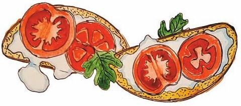 – Да всё очень просто! – сказал Лёвка. – Берёте чеснок, давите его в чеснокодавилке, смешиваете с майонезом. Туда же добавляете нарезанную петрушку, перемешиваете и мажете на хлеб. Потом сверху кладёте помидоры – и всё, готово!