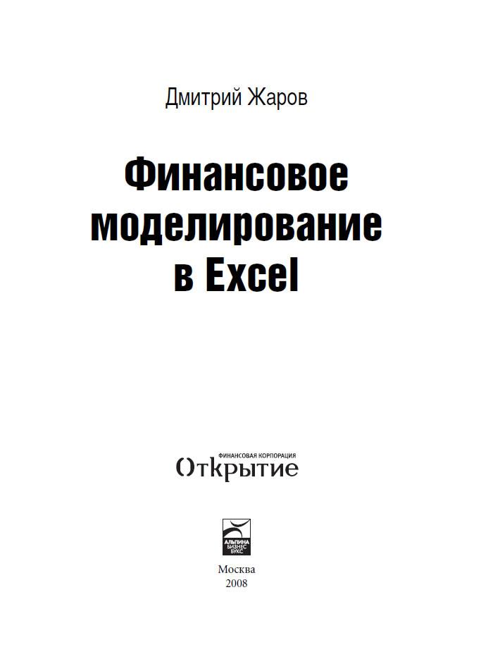 Финансовое моделирование в Excel / Дмитрий Жаров. — М.: Альпина Бизнес Букс, 2008.