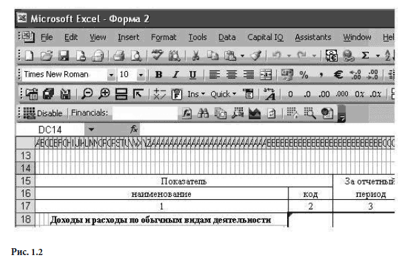Одна из самых безобразных вещей, которые встречаются в оформлении, — использование десятков столбцов, суженных до миллиметра (в таком виде отчет предлагается, например, правовой базой «КонсультантПлюс»). Выглядит этот кошмар приблизительно так: