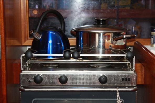 — Даже наш чайник со свистком, ходивший с нами на всех наших яхтах, приказал долго жить — отвалился свисток, пришлось идти и делать «коренные покупки»;