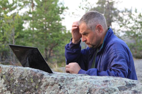 Тишина, разноголосье птиц, запах северного леса. Вокруг скалы. Телефонной связи нет, надо лезть на гору и ждать, когда в твою сторону дунет ветер от вышки — и вот тогда она будет, но вот она опять пропала. Рыба плещется, кругом малек. Говорят, что осенью, в сильный шторм, сорвало все садки с форелью на рыбных фермах и в озеро ушло более 200 тонн форели! Сейчас сюда едут со всей России рыбаки в надежде на удачу…