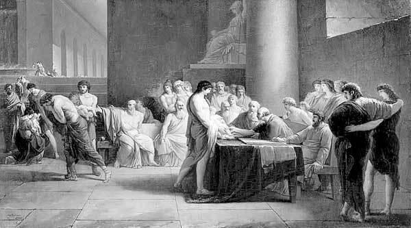 Например, когда надо было назначить человека на высокую должность, кандидатов проводили перед народным собранием, и присутствовавшие должны были криком одобрить того, кто понравился. А специальная счетная комиссия фиксировала, за кого громче кричали. Афинянин Аристотель назвал этот метод ребяческим.