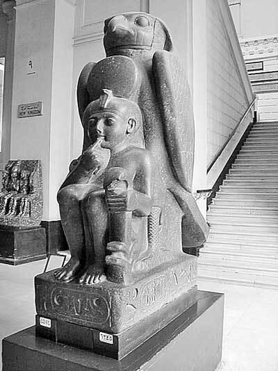 Рамсес II, изображенный и виде ребенка, охраняемого божеством. Каирский музей