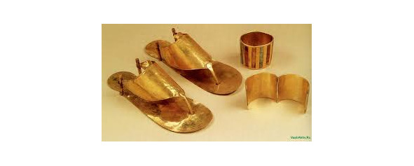 Всё случилось за месяц до гибели. Кузен фараона прибыл к мастеру и приказал создать этот медальон, на котором должна была бы быть изображена девушка. Но на то время у ювелира не было достаточно золота, а ему принесли несколько пар золотых сандалий, из царской ноги, которые пришли в негодность и их нужно было переплавить. Бедному мастеру ничего не оставалось, как использовать обувь фараона для создания украшения.