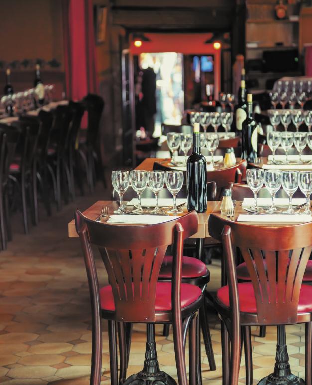 Еду подавали как у стойки (называемой «цинк», хотя она изготавливалась из олова), так и в зале за столами, окруженными легендарными стульями бистро, которые изобрел Михаэль Тонет в 1859 году. Блюда бистро всегда были обильными, успокаивающими, сезонными и попросту вневременными.